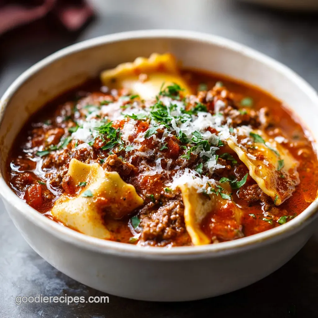 Lasagna Soup: Savory Broth & Cheese